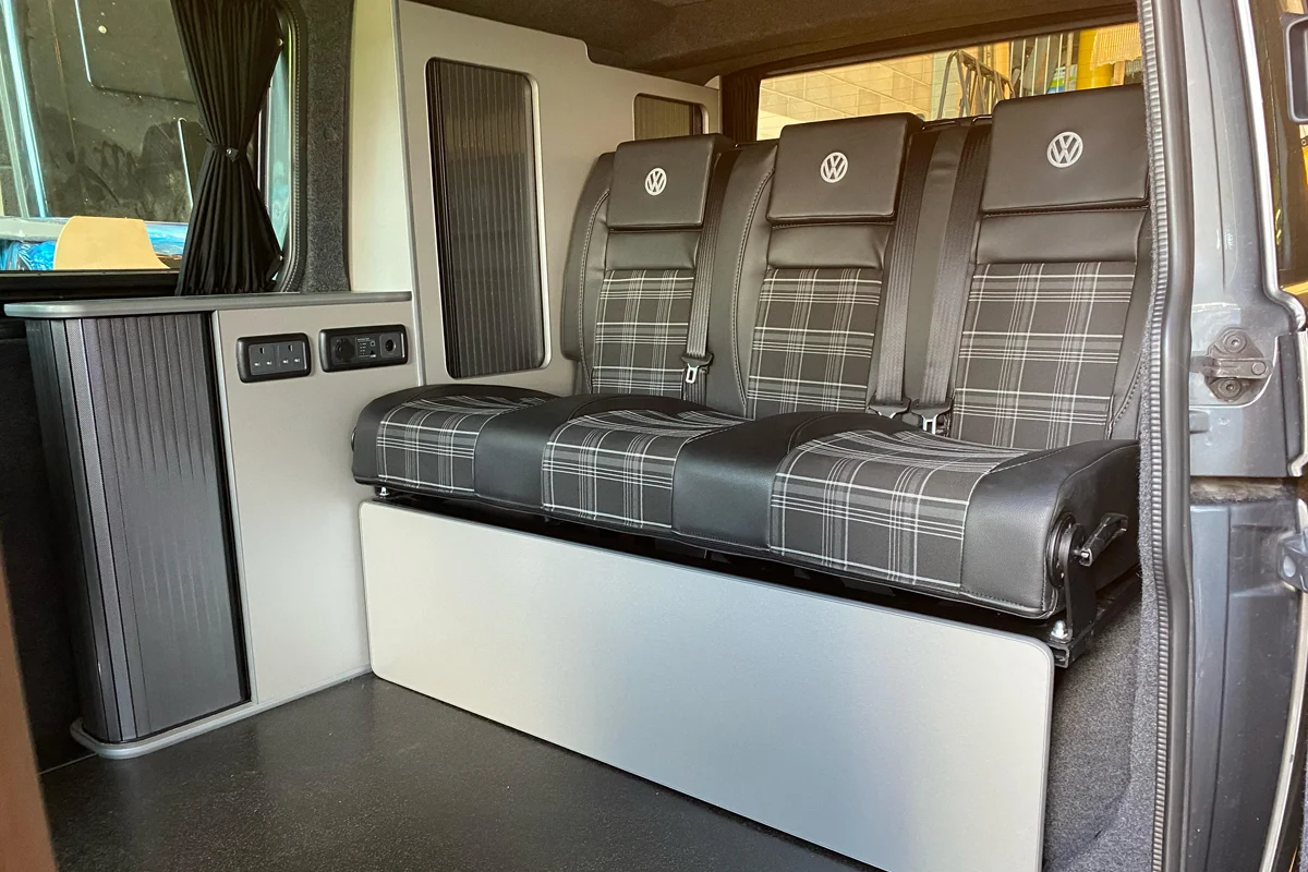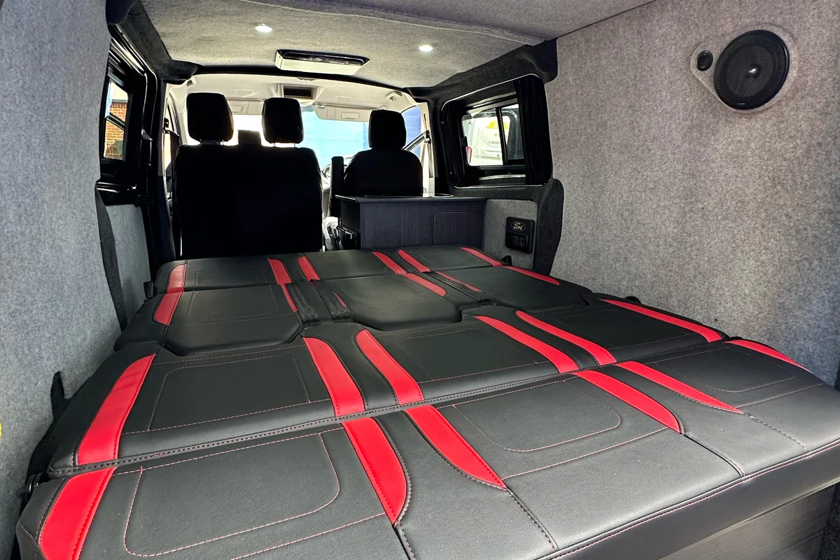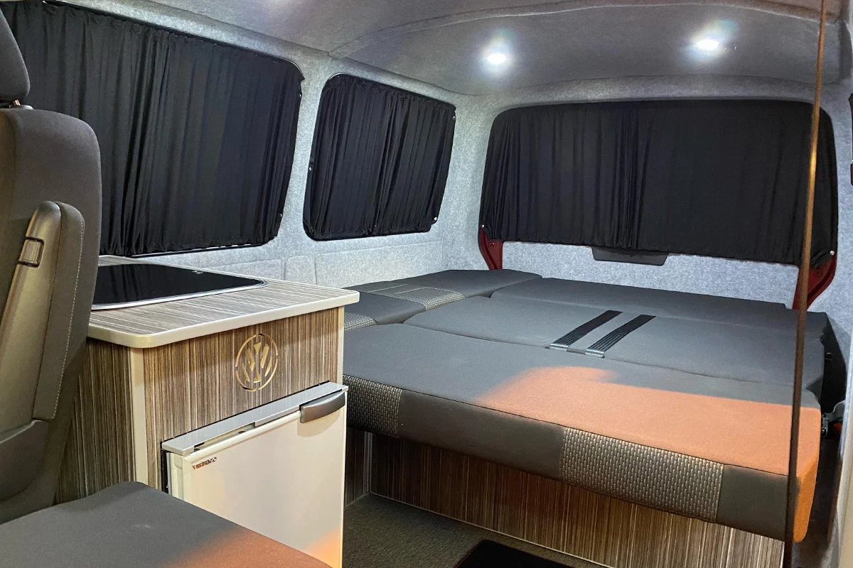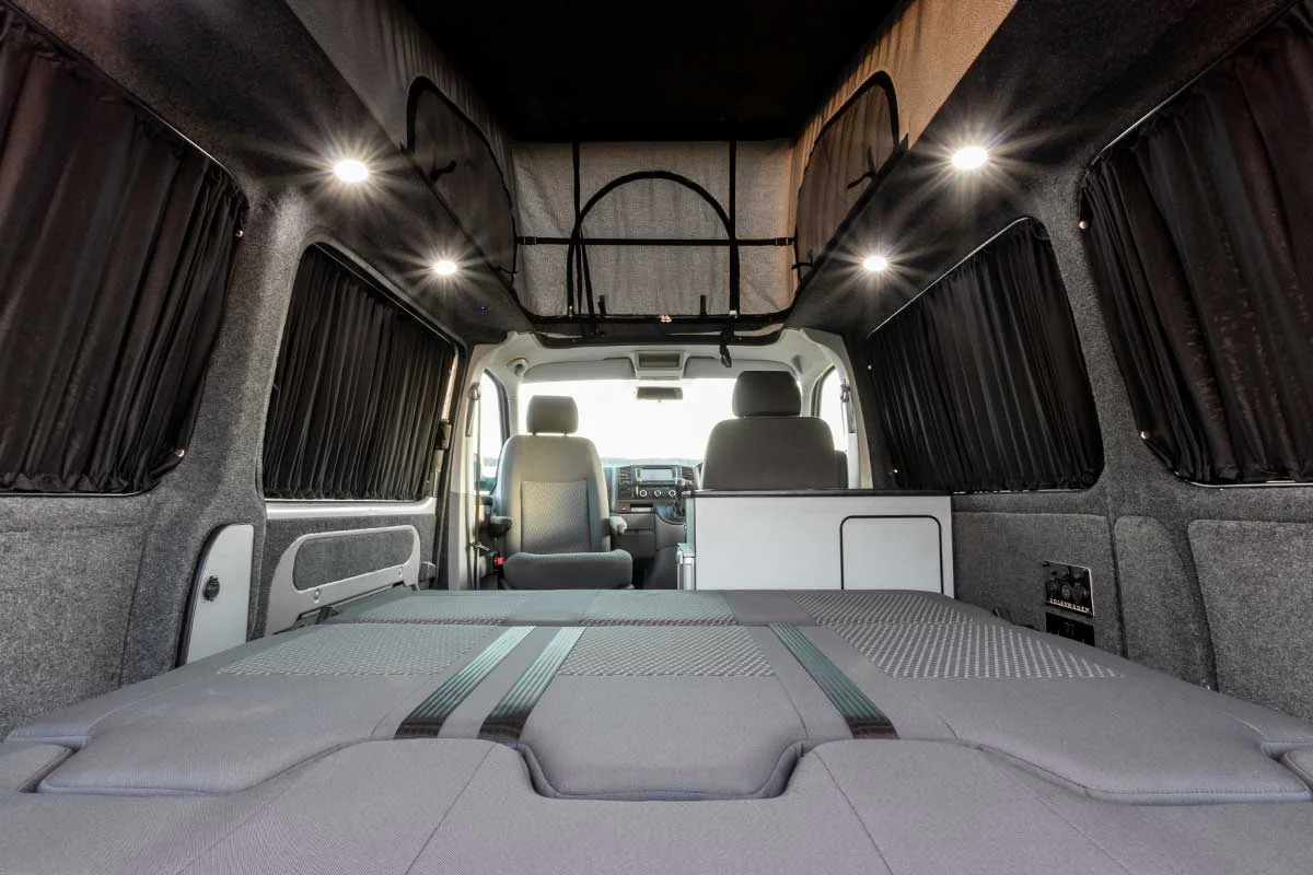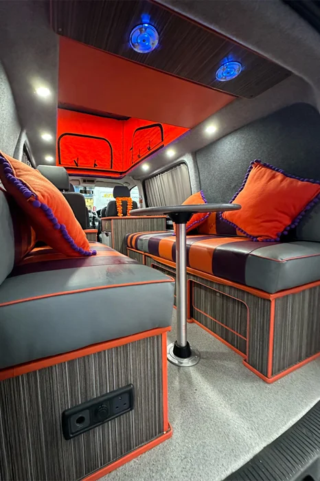 What makes our day vans unique is our fully customised kitchen pod. This can be designed to suit your exact needs. Typically our customers opt to have a double hob and sink and premium fridge fitted within. This setup includes a gas and water bottle so you're ready to cook straightaway. All our kitchen pods are removable, simply unbolt the four high tensile bolts and lift the lightweight unit out. We can also fit a custom panel that will sit along side the pod to give you a USB charging point, cigarette socket and volt meter.